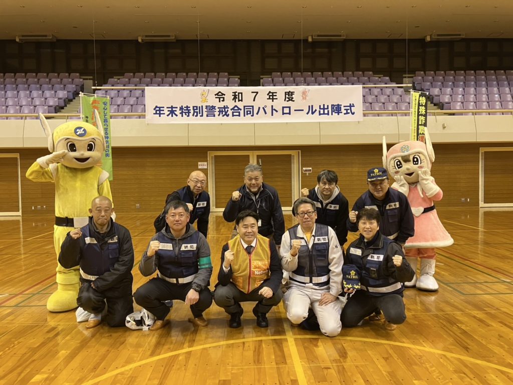 年末年始の犯罪や交通事故を防ごうと年末年始特別警戒合同パトロール出陣式が厚木市中荻野の荻野運動公園で行われた。厚木署と厚木市、愛川町、清川村、防犯ボランティア団体、青色防犯パトロール隊などが参加。青色防犯パトロール車両(青パト)が同公園を出発し3市町村内のパトロールに向かいました