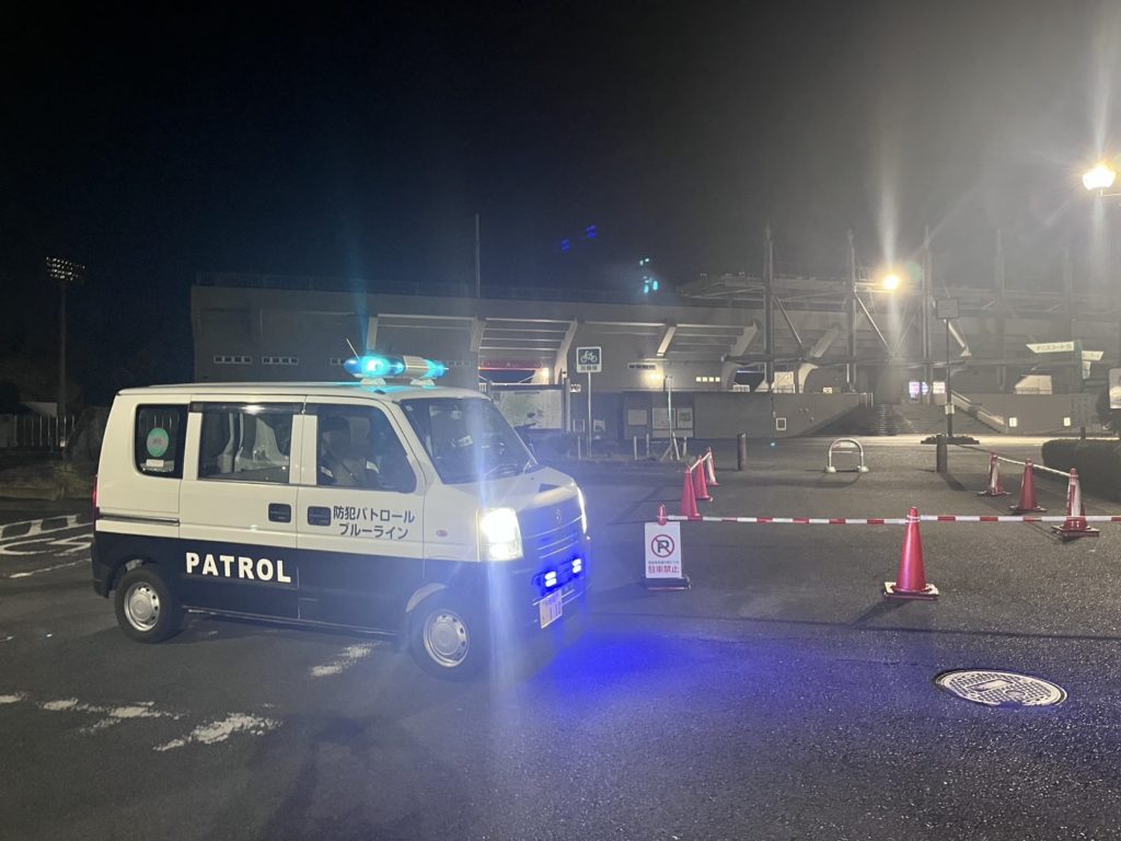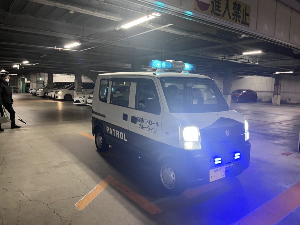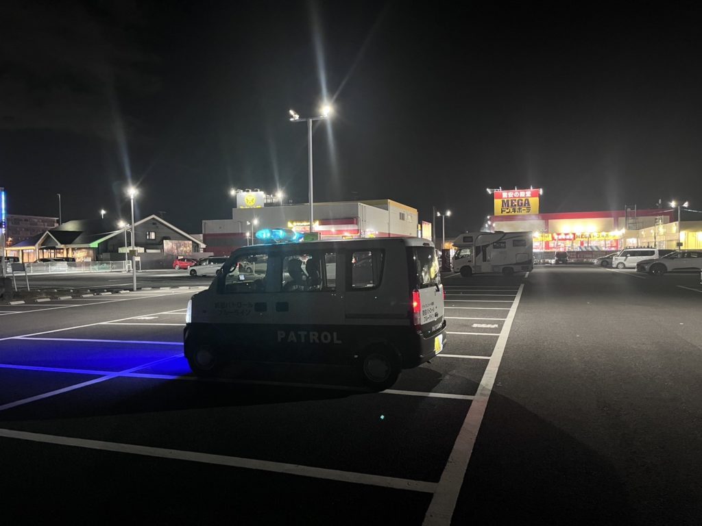 商業ビルの駐車場からパトロール